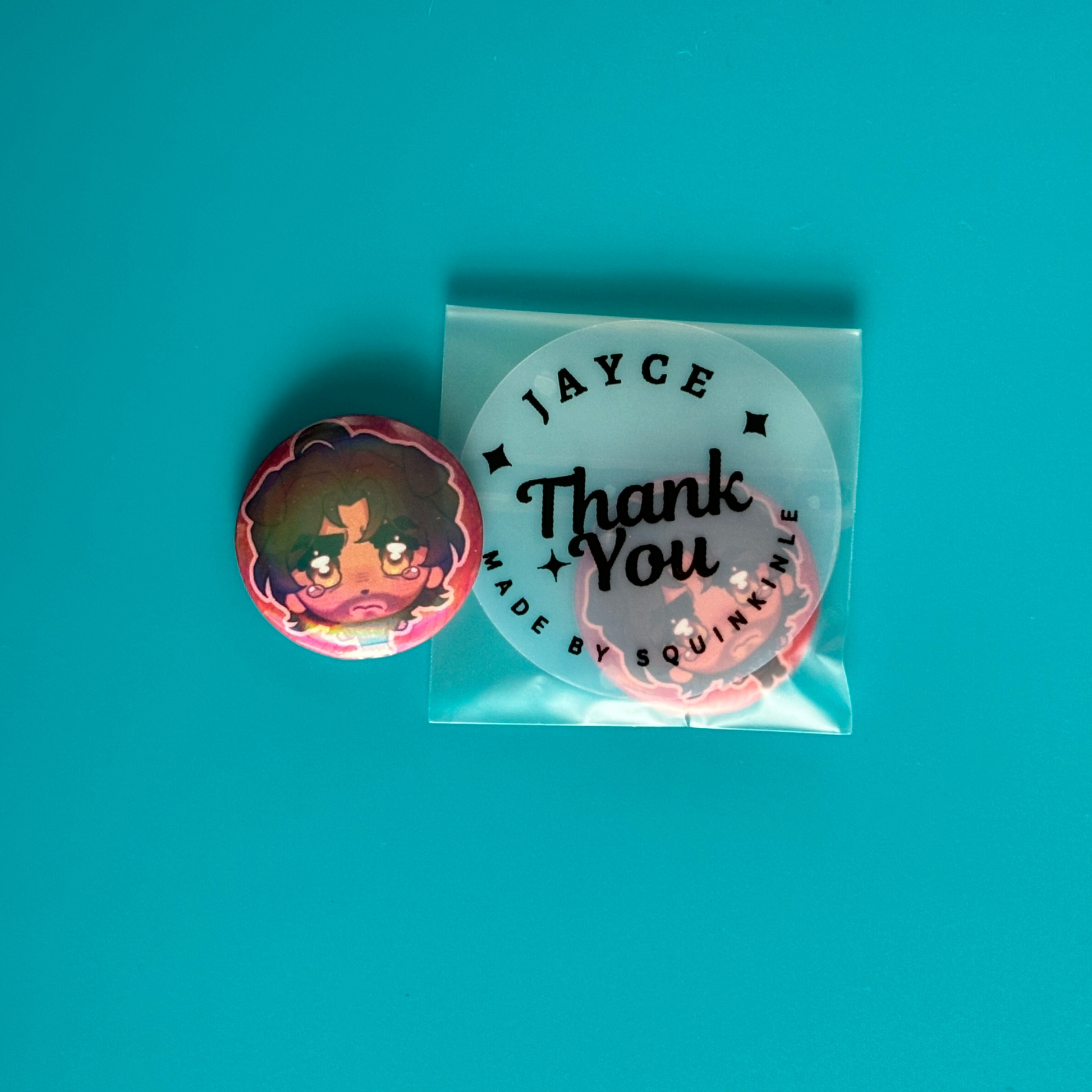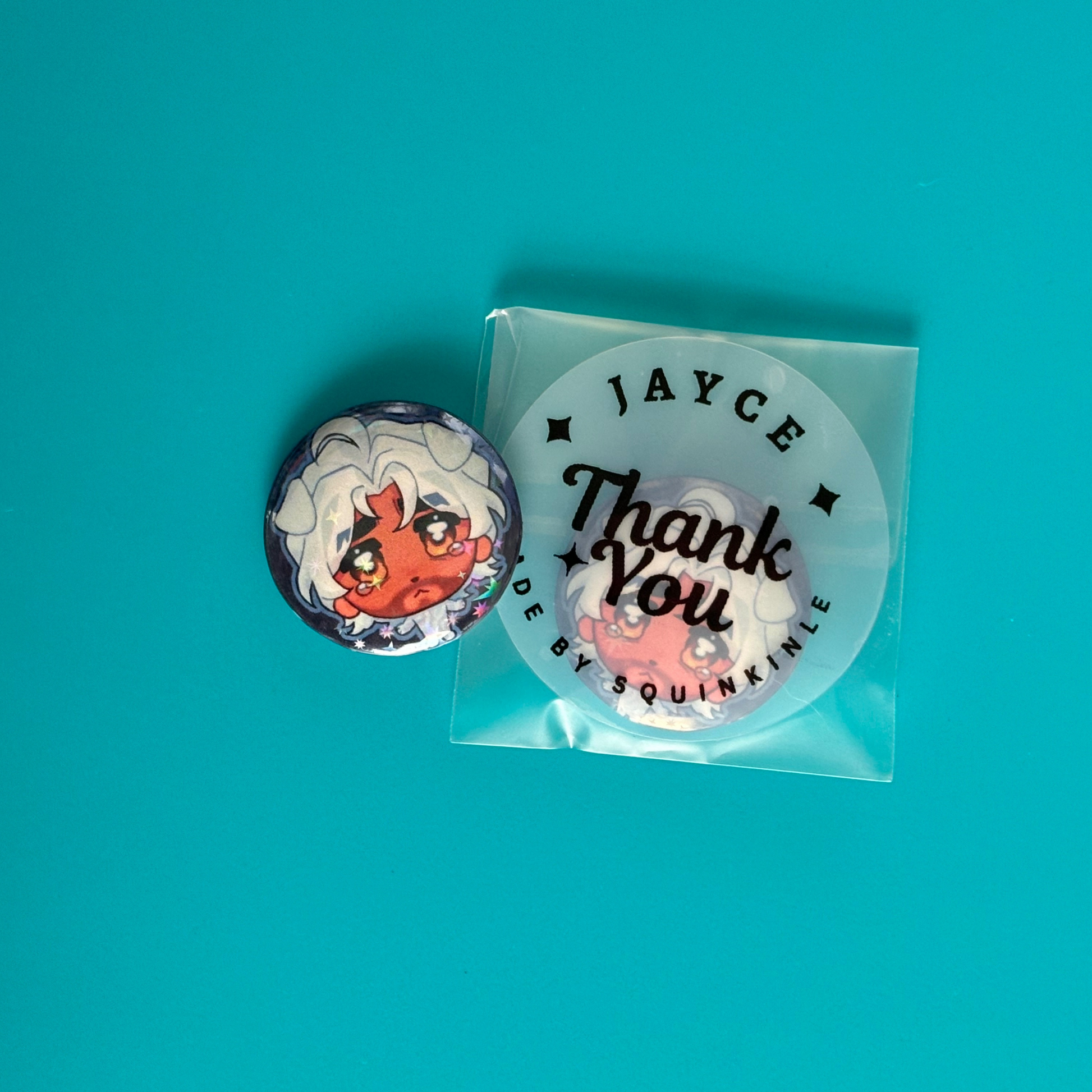 ✦ 1.25" (~3.175) Pin-Back Metal Buttons.